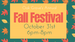 Fall Festival March 17, 2025 by Jessica Wilson October 31, 2018Fall Festival6:00 pm - 8:00 pmJoin us for an evening of low cost fun for the whole family! There will be games, prizes, cake walk, a bounce house, hay rides, hot dogs and not to mention LOTS OF CANDY! We hope to see you there! Community Event